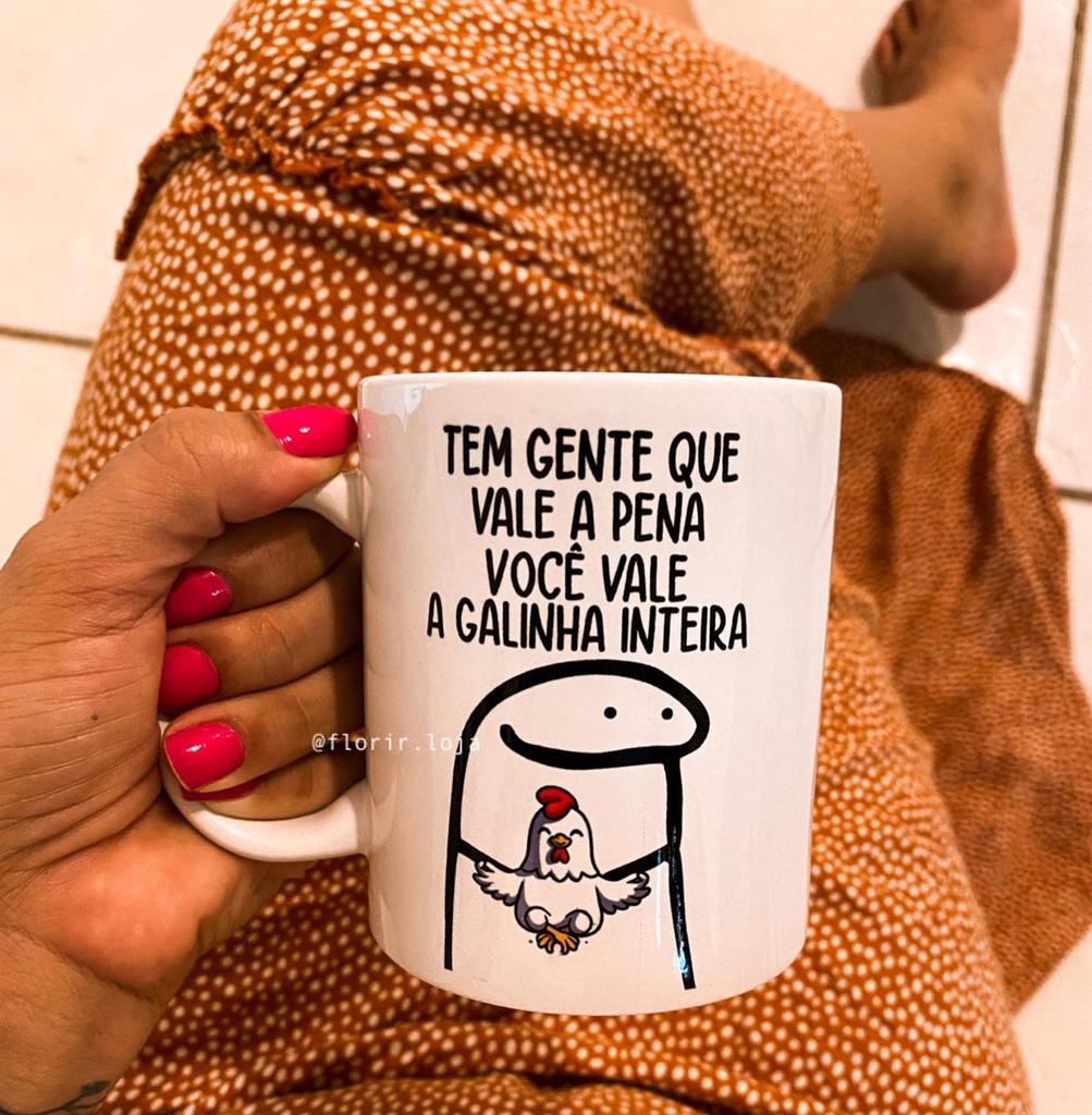 Adicione um toque de humor e estilo à sua rotina com a Caneca Personalizada Flork Vale a Galinha Inteira. Garanta a sua agora mesmo e leve alegria para cada gole!