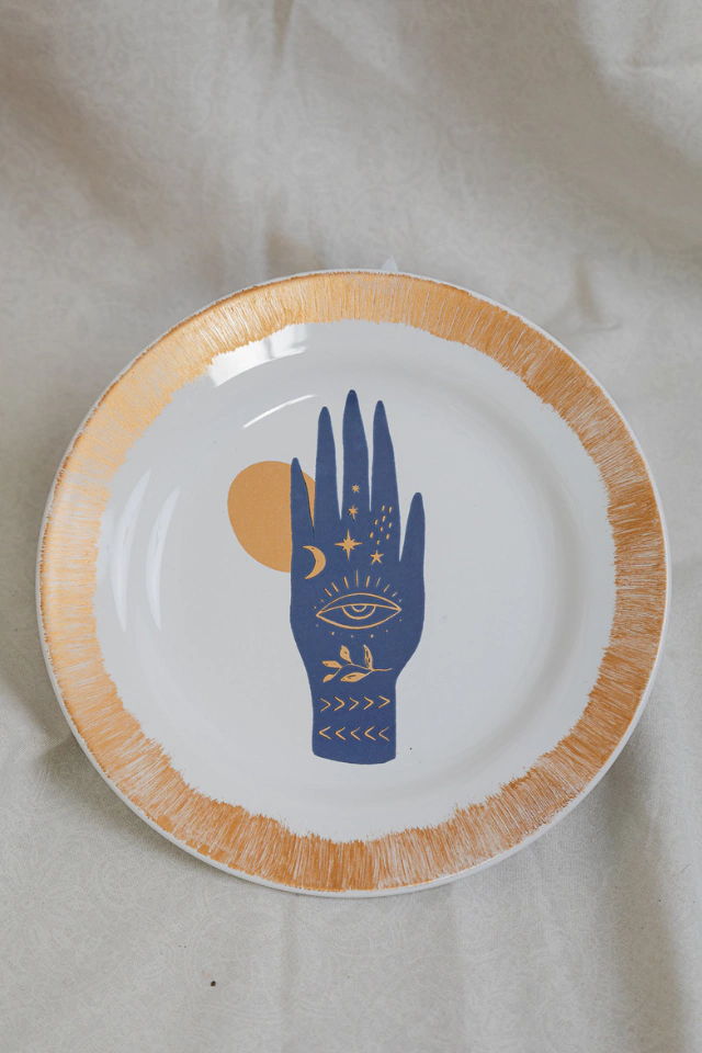 Transforme suas refeições em momentos de magia e proteção com o Conjunto de 2 Pratos Janta Mão Mística, da exclusiva Coleção Talismã. Cada prato é pintado à mão, garantindo que cada peça seja única, assim como você!