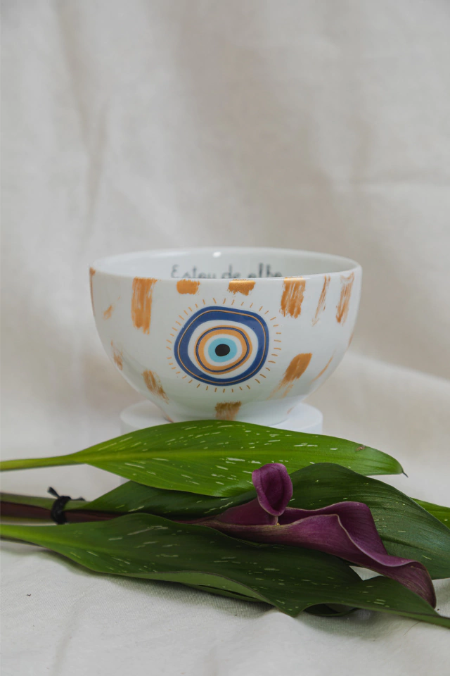 Este conjunto da Coleção Talismã traz quatro bowls pintados à mão com o poderoso símbolo do Olho Grego, reconhecido por afastar energias negativas e atrair boas vibrações. Feitos em porcelana ou cerâmica de alta qualidade, esses bowls são ideais para servir sopas, sobremesas e snacks com propósito e estilo.