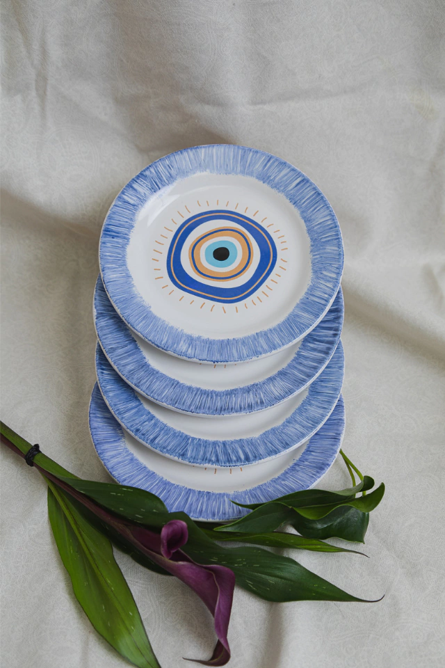 Amuleto de proteção: o Olho Grego é um poderoso símbolo esotérico que transmite segurança à mesa.