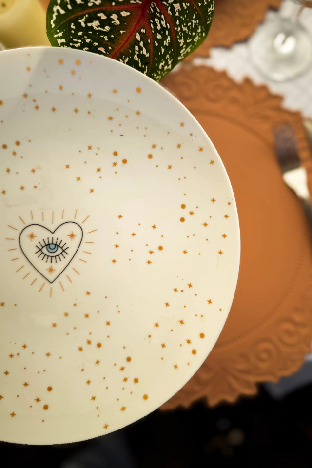 🔮 Conjunto 4 Pratos Rasos Olhar – Linha Olhar | Coleção Talismã