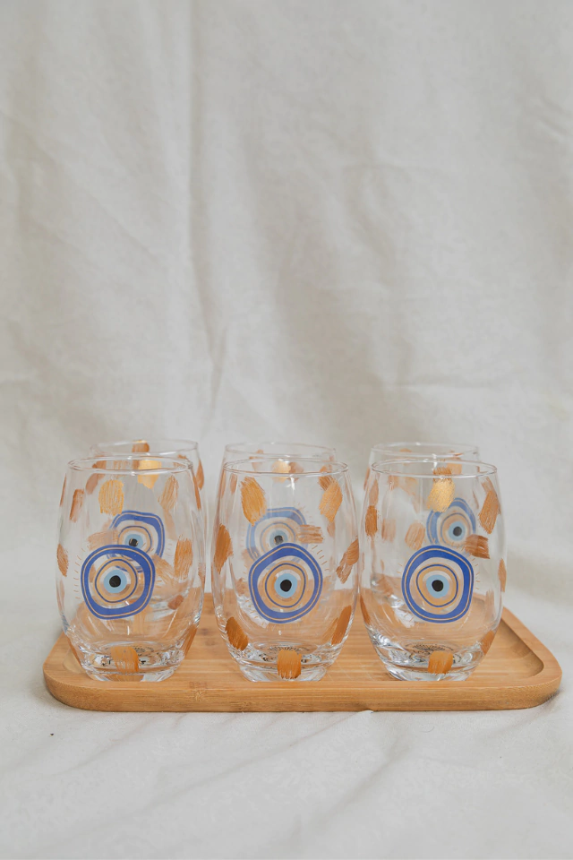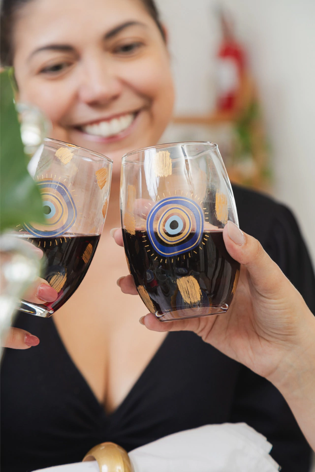 Eleve suas celebrações com o poder de proteção e boas energias do Conjunto de Copos Olho Grego, parte da exclusiva Coleção Talismã. Composto por 6 copos pintados à mão de forma artesanal, cada peça é única, assim como você!
