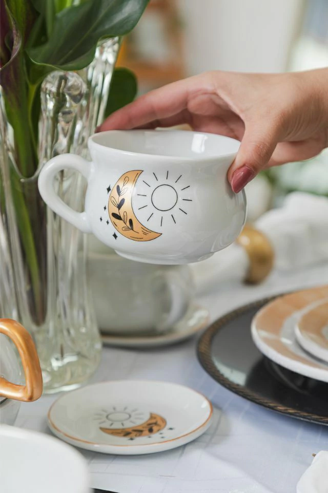 🎁 Conjunto Pires + Caneca Caldeirão Sol e Lua – Coleção Talismã (Sou Florir)