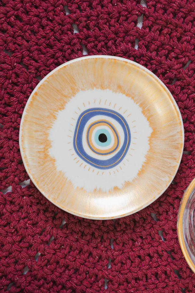 Este pires é finamente pintado à mão, adornado com o símbolo do Olho Grego, reconhecido por afastar energias negativas e atrair boas vibrações. Ideal para quem valoriza rituais conscientes, decoração temática e sofisticação artesanal.